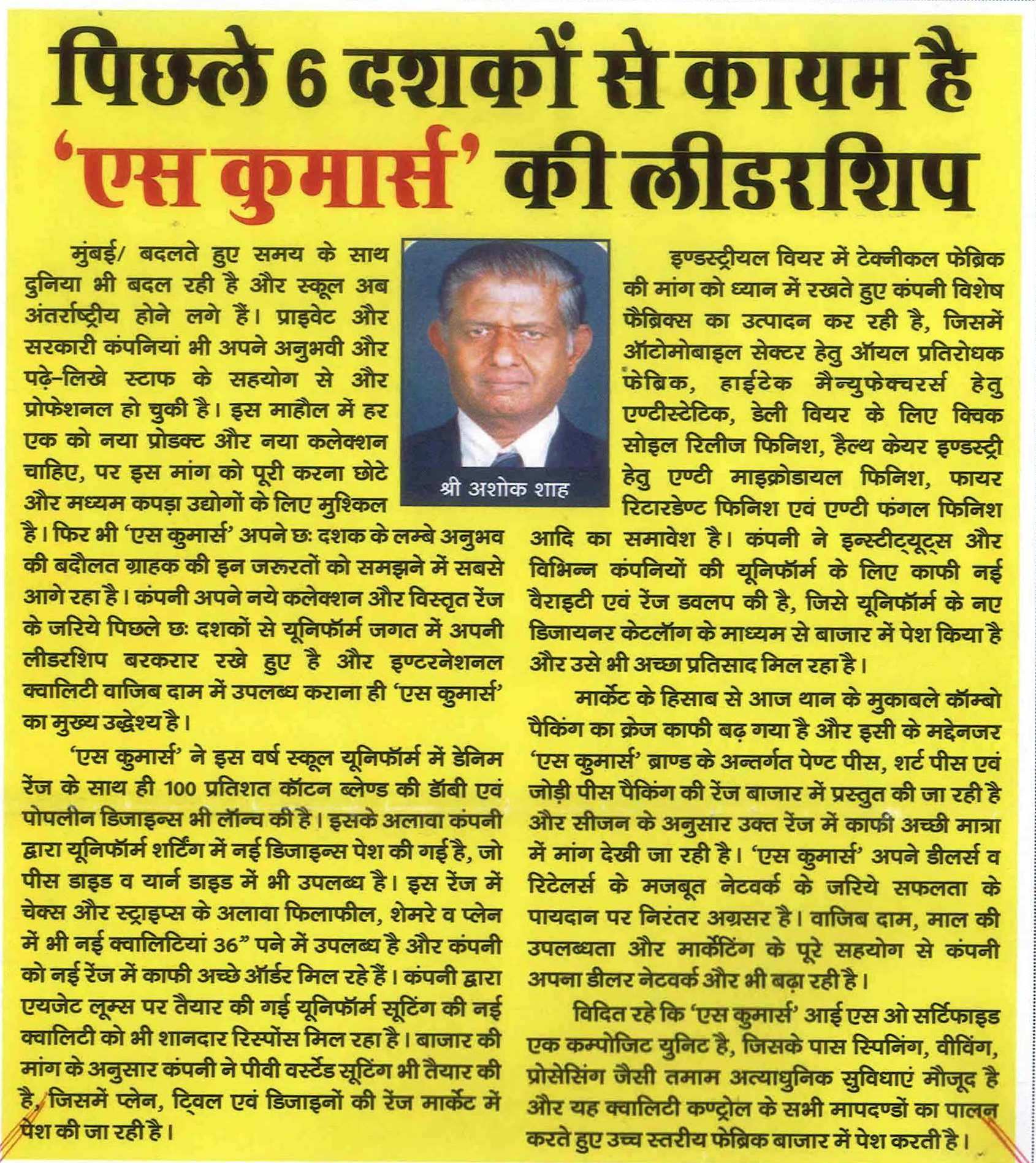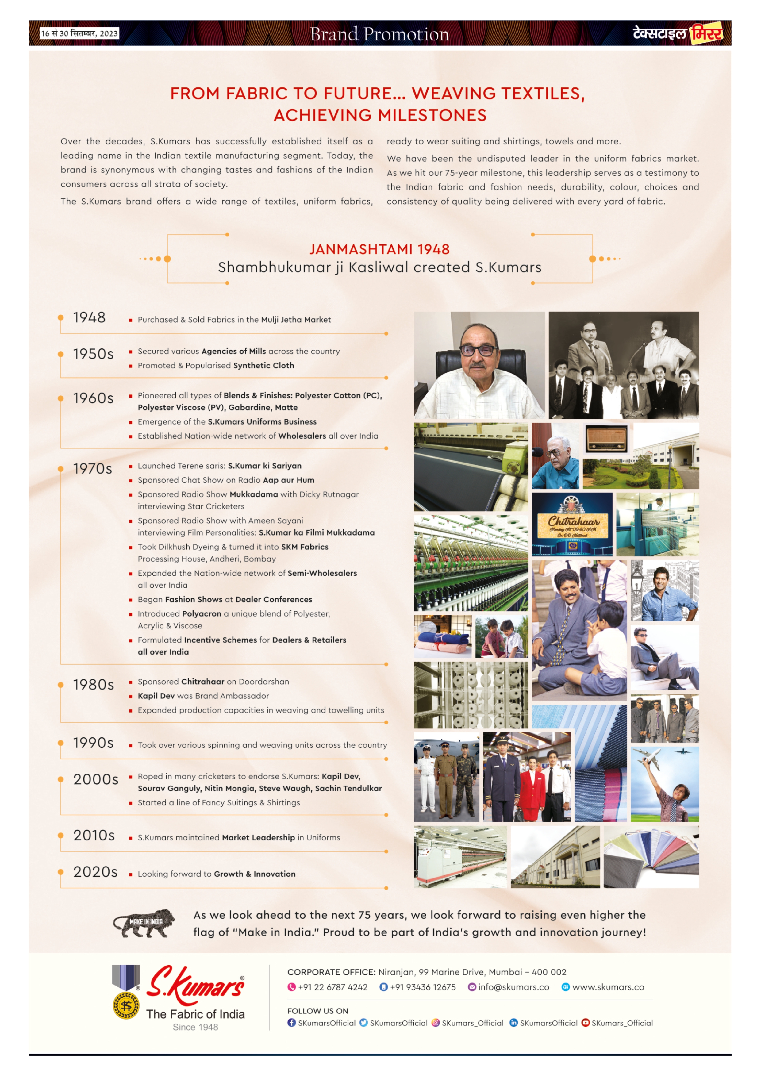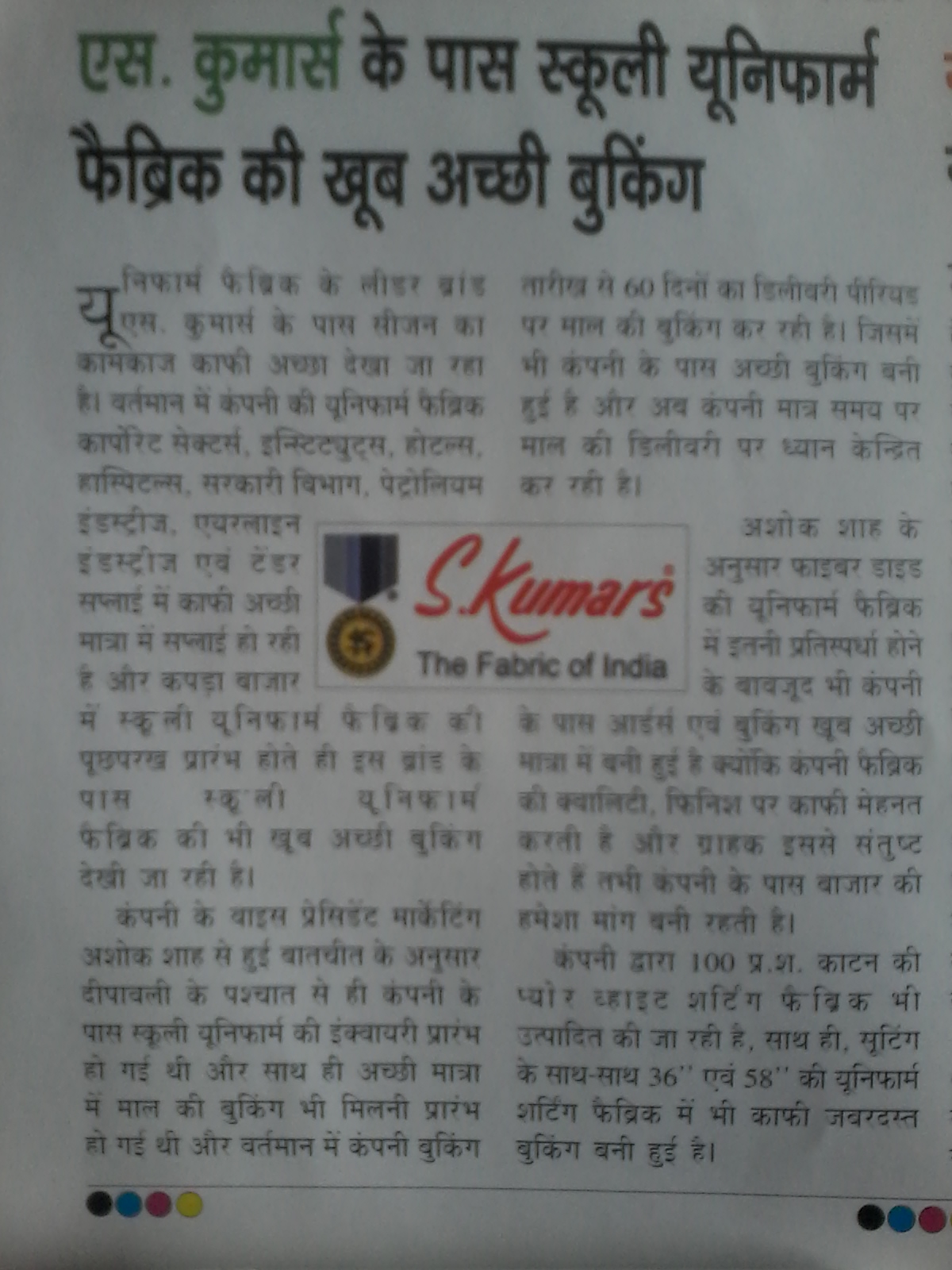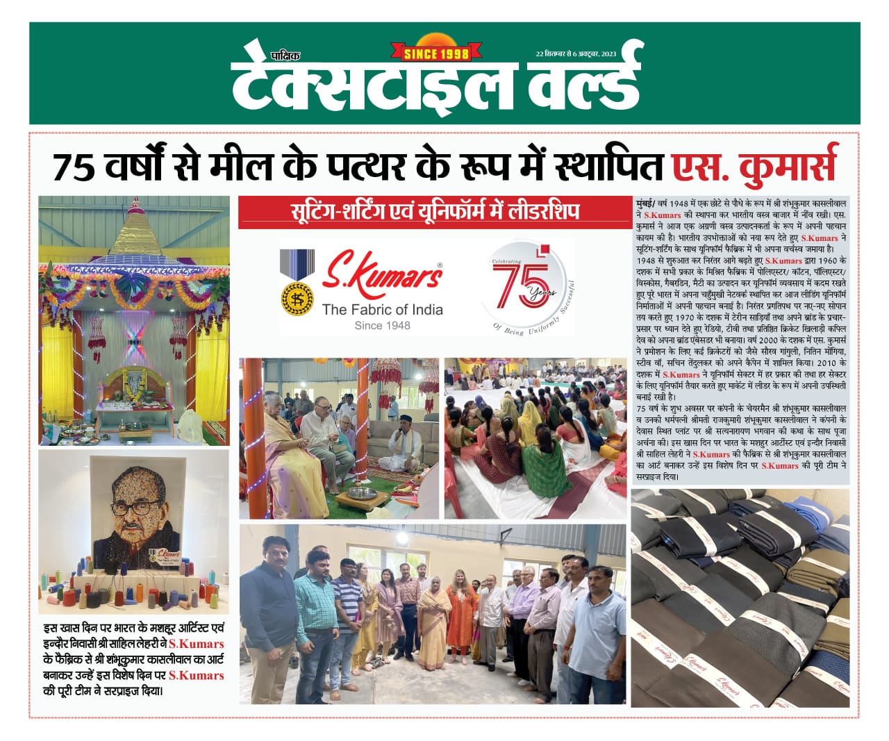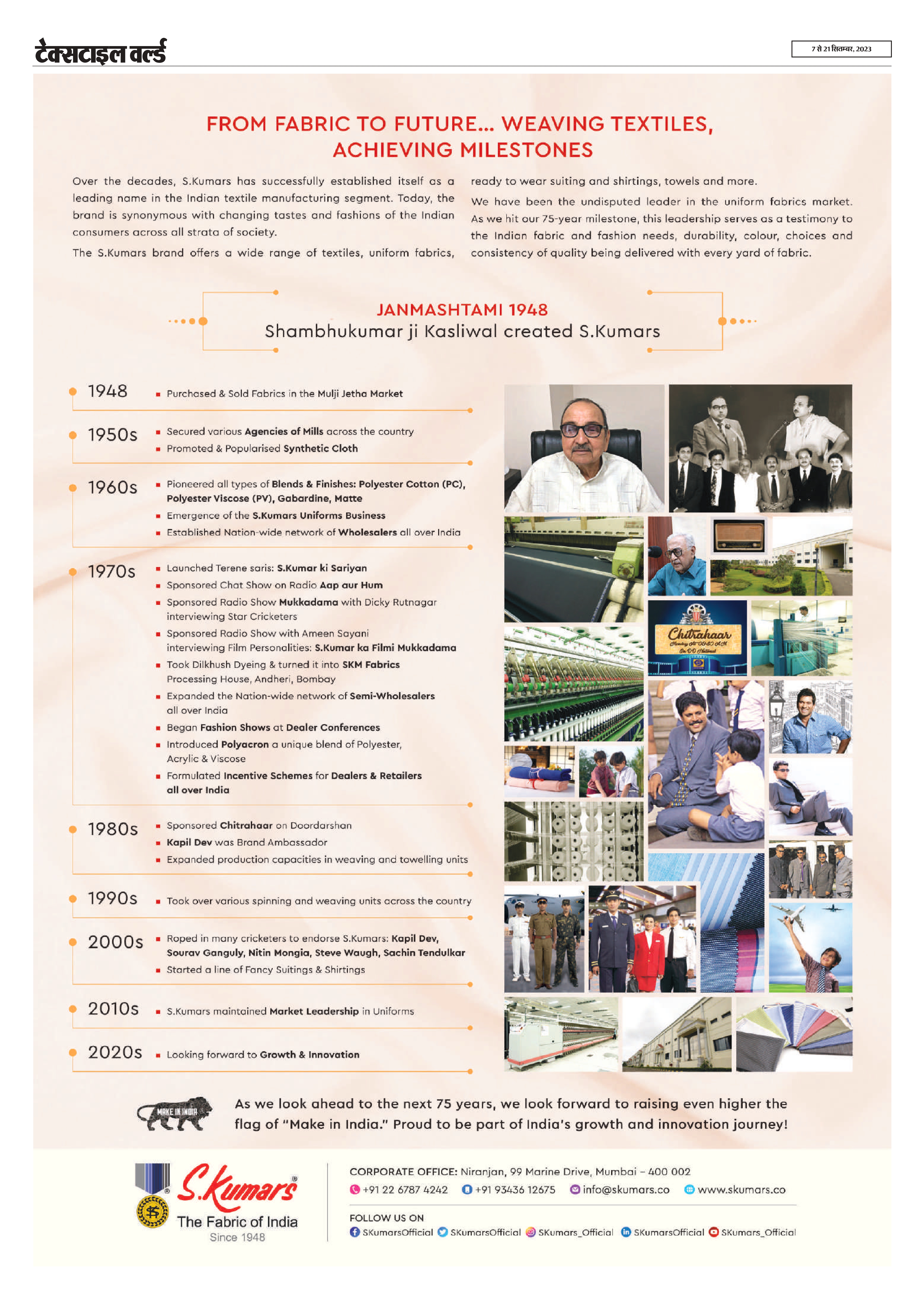 Textile World Newspaper article in Special Manufactures Supplement about S.Kumars.