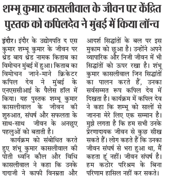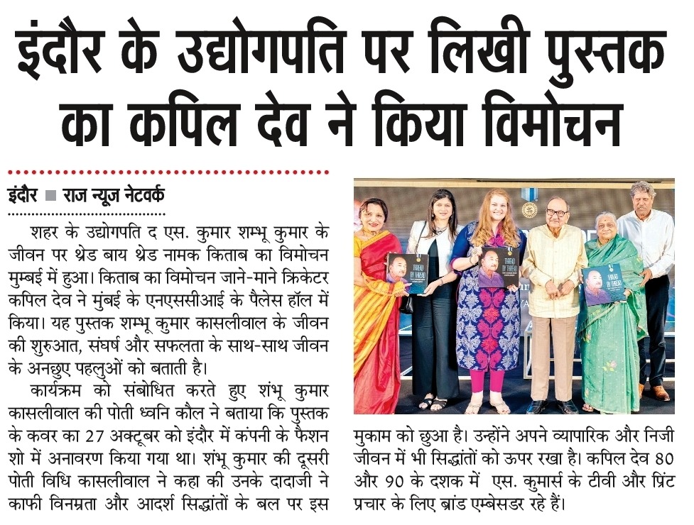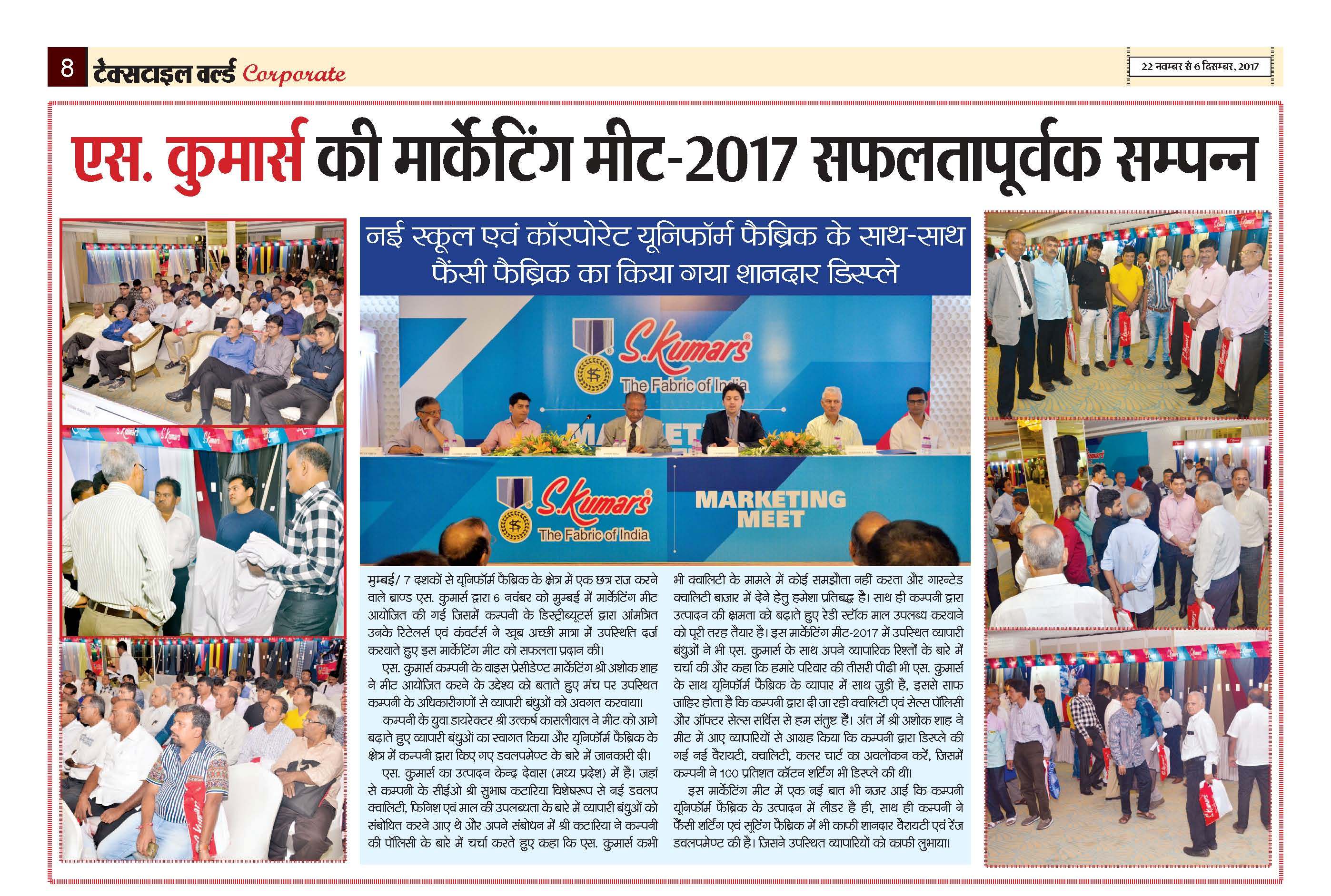 Vyapar Newspaper Covering S.Kumars Marketing Meet 2017 from Mumbai.