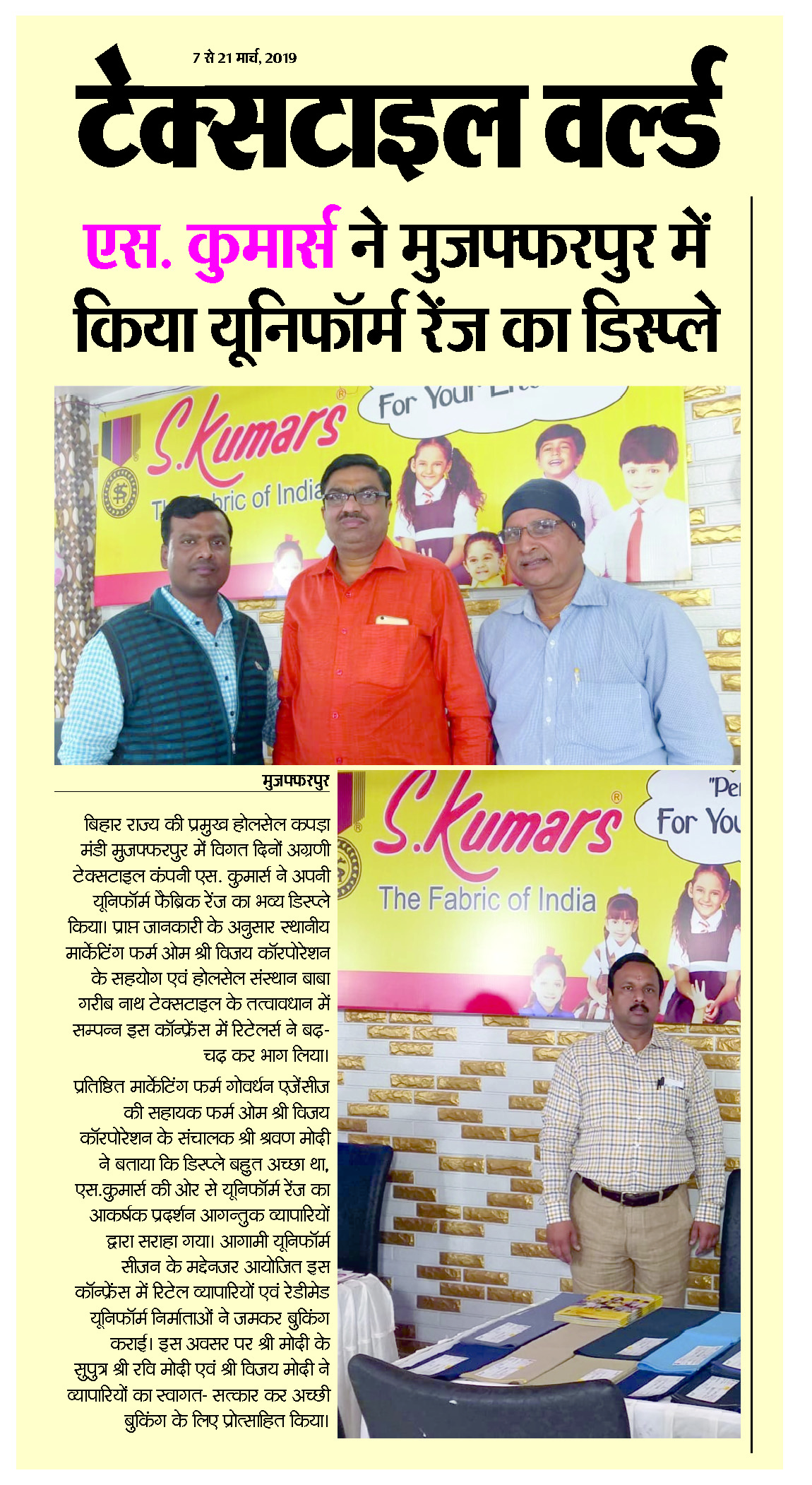 Textile World covering S.Kumars Fabric Display Organised By Baba Garibnath Textiles, Bihar.