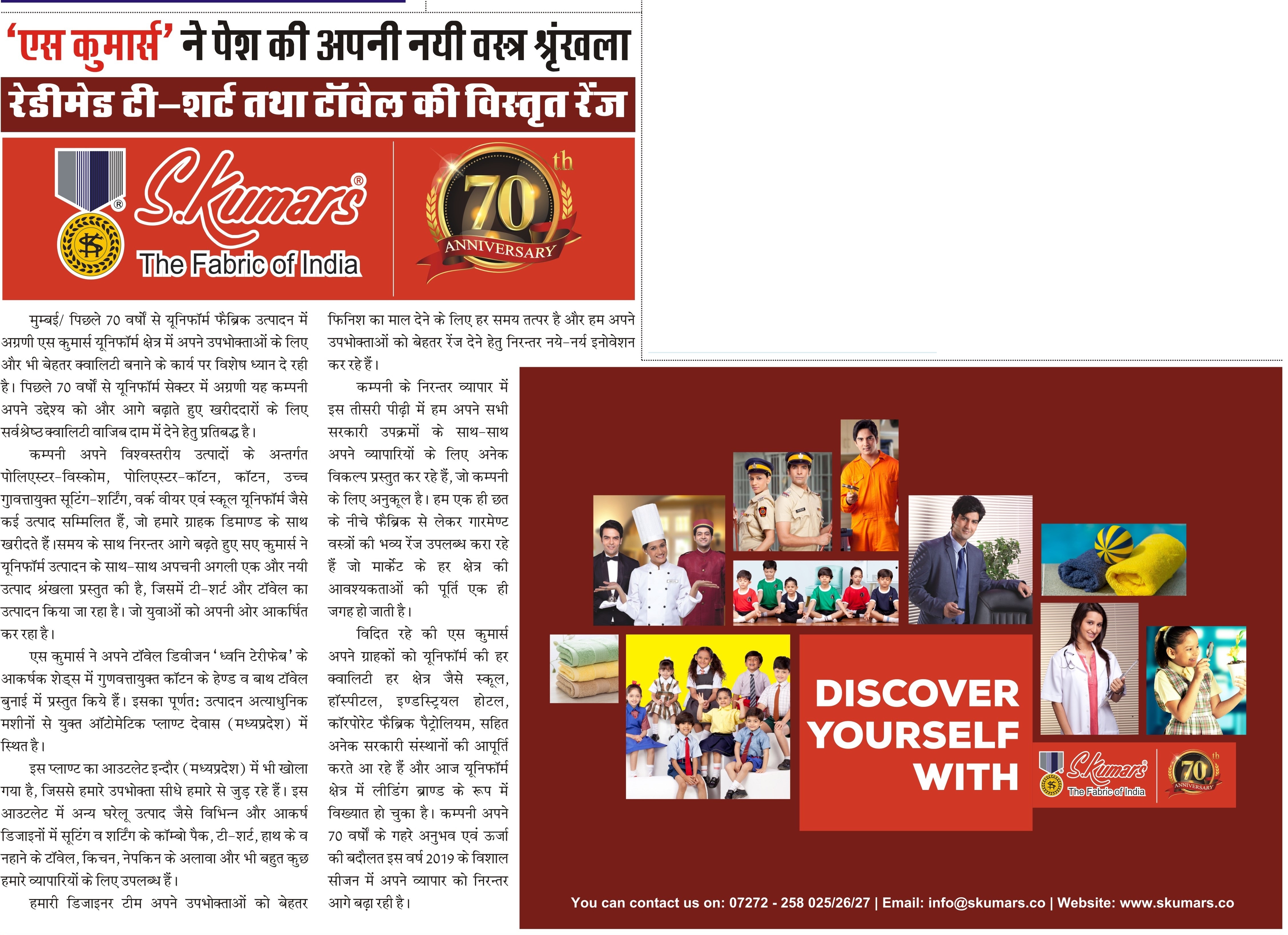 Advertisement in Textile World news paper special issue for Uniform Fair - Bangalore.